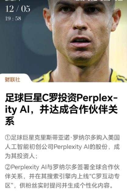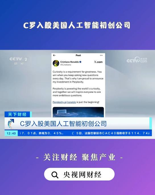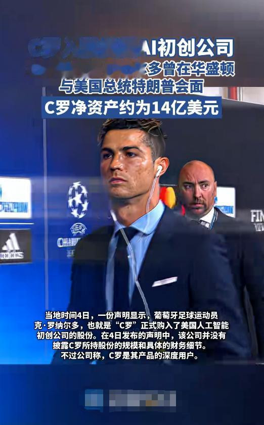 近日,C罗在社交媒体上发布了一条视频,表明其将投资美国人工智能的头部企业。