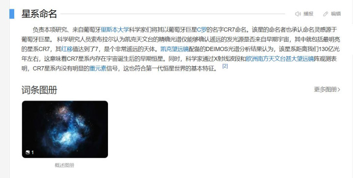 不仅如此,葡萄牙甚至还将其发现的一个新外太空星系命名为“CR7”星系,只为向C罗致敬。