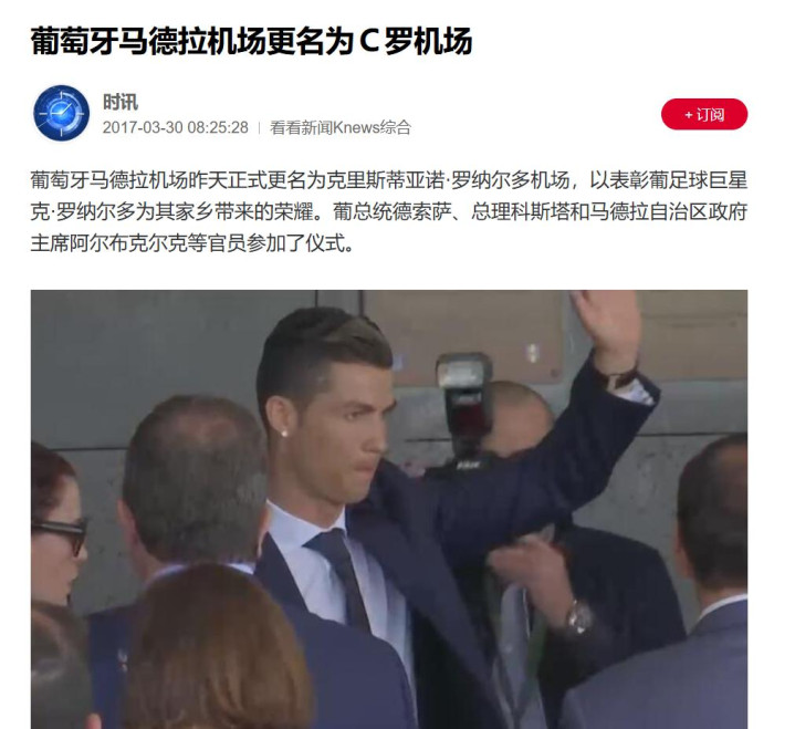 而C罗的名声还不仅限于葡萄牙国内,其声望早已跨越足坛,进军国际。