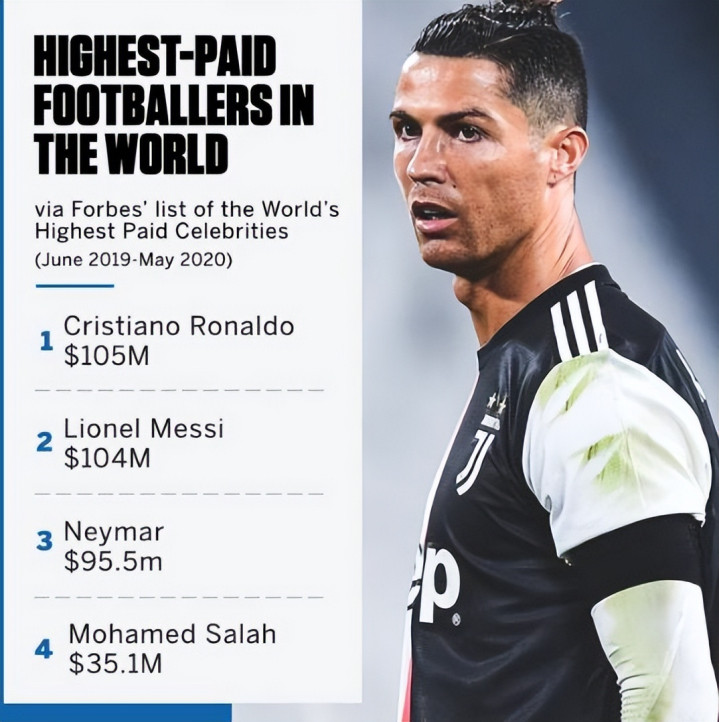 尽管凭借精湛的球技以及棱角分明的长相,C罗的粉丝群体几乎遍布世界各地,并且还曾称霸福布斯运动员收入排行榜。