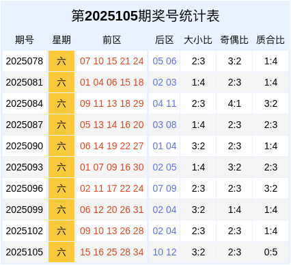 开奖回顾:大乐透第2025107期奖号为:05、07、08、15、33 + 06、10。
